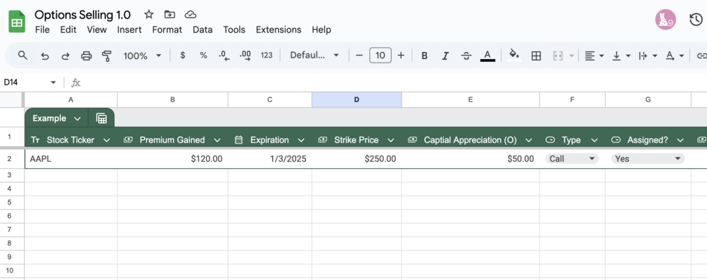 Options Selling Tracker Spreadsheet 1.0
